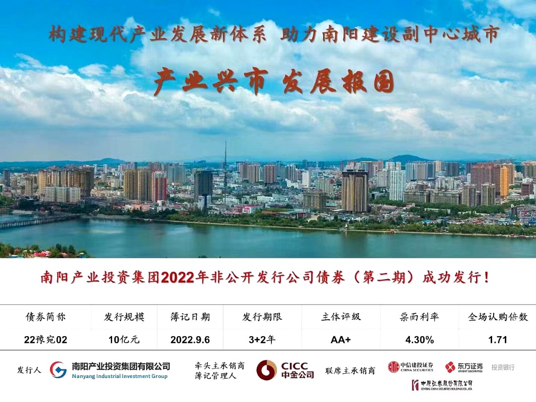 南陽產(chǎn)業(yè)投資集團(tuán)有限公司是南陽市人民政府出資的國有資本產(chǎn)業(yè)投資運(yùn)營公司,是市委、市政府實(shí)施產(chǎn)業(yè)強(qiáng)市行動(dòng),支撐全市產(chǎn)業(yè)轉(zhuǎn)型發(fā)展的重要載體和平臺(tái)。公司組建于2018年10月,法定代表人、董事長胡明柱,截止2025年底,集團(tuán)資產(chǎn)規(guī)模達(dá)到1084億,企業(yè)主體信用評(píng)級(jí)AAA。